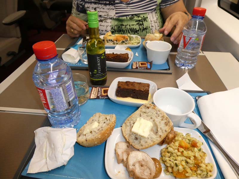 Den lille prisforskjellen på 8 euro var ingenting i forhold til atmosfæren i Standard Premier-vognen. 2 + 1 sete i bredden, som på første klasse. Og et lite måltid med vin til maten, kaffe og en kakebit. Vi storkoste oss ved vårt bord for to.